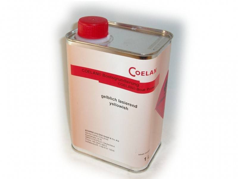 - Coelan heeft twee soorten primer: transparant (lichtgeel gekleurd) en gepigmenteerd (rood gekleurd). Deze rood gepigmenteerde primer is speciaal om mahonie hout en andere lichtgevoelige houtsoorten te beschermen tegen verkleuring. Breng na het schuren van de ondergrond de speciale primer aan in de kleur naar keuze (geel voor teak en rood voor mahonie). Breng daarna pas Coelan aan.